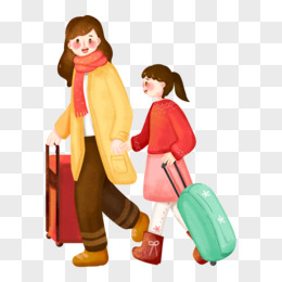 手绘卡通母女一起擦窗户搞卫生插画免抠元素