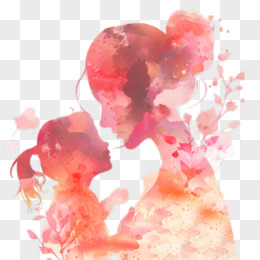 母亲节母女妈妈孩子宝宝拥抱亲吻手绘卡通母爱文艺卡片水墨水彩礼物祝福
