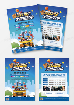 蓝色简约卡通驾校招生轻松拿驾照驾校宣传单设计