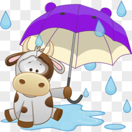 卡通下雨拿雨伞的牛