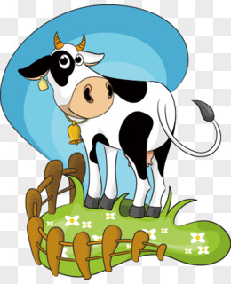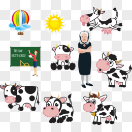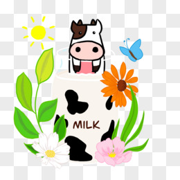 卡通手绘小男孩给奶牛挤奶免抠元素