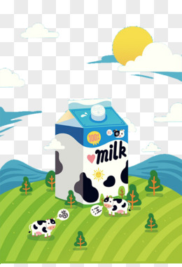 卡通手绘躺在牛奶杯里的奶牛免抠素材