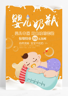 黄色卡通婴儿奶瓶创意海报