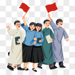 手绘插画风民国时期学生街头游行宣传爱国元素