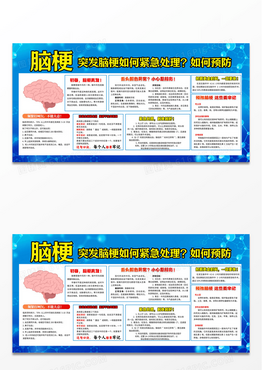 蓝色卡通脑梗突发脑梗如何紧急处理展板夏季健康