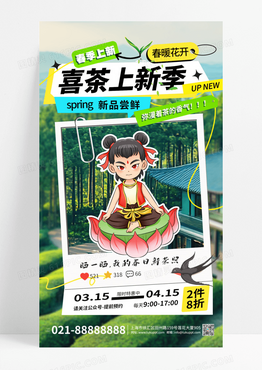 绿色春日卡通哪吒春茶上新宣传海报