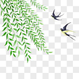 卡通 鸟 树叶 手绘 男女 背景装饰 矢量图