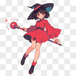卡通坐在魔法棒上飞在空中的魔女免抠元素
