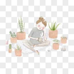 卡通创意女孩坐在荷叶上捧着露水免抠元素
