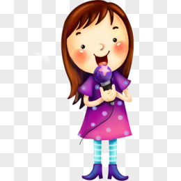 卡通手绘女孩唱歌唱儿歌免抠元素