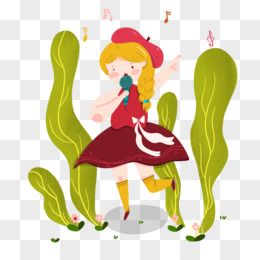 卡通手绘免抠唱歌的女孩素材