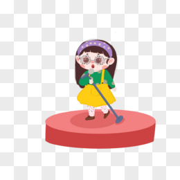 卡通手绘女孩上台表演免抠元素
