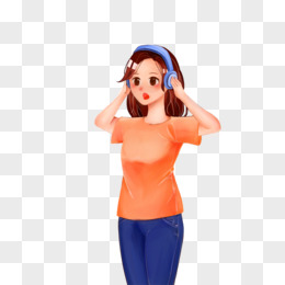 卡通带耳机女孩素材