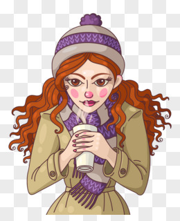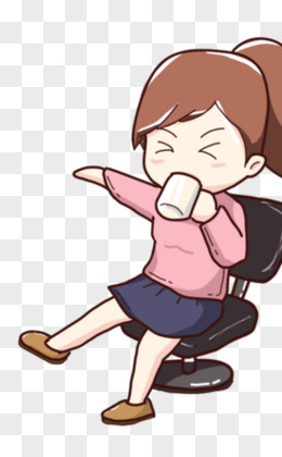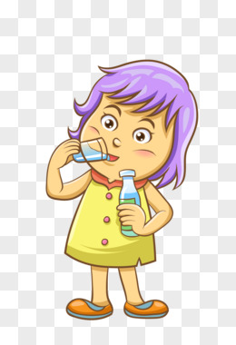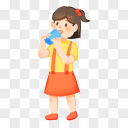 手绘卡通坐在地上喝水的女孩子免抠素材