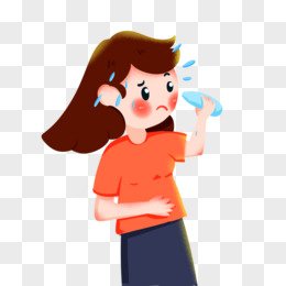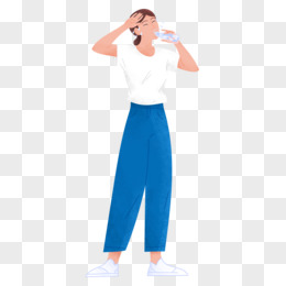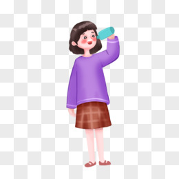 卡通手绘插画风运动小女孩口渴喝水免抠元素