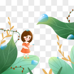 卡通创意女孩坐在荷叶上捧着露水免抠元素