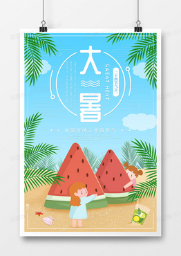 可爱卡通风手绘大暑节气海报