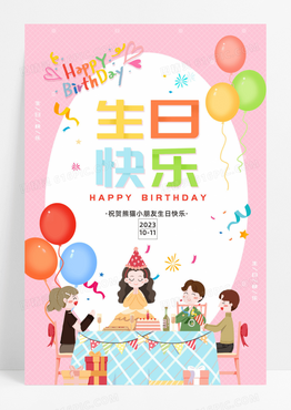 粉色卡通少女心小朋友生日宴宣传海报