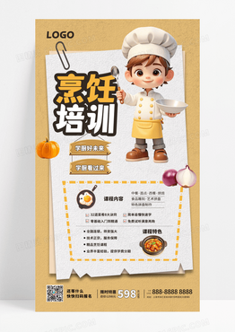 简约大气卡通厨师职业技能培训课程招生宣传海报