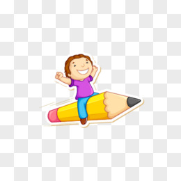 卡通风开学季一个小男孩骑着铅笔飞行免抠元素
