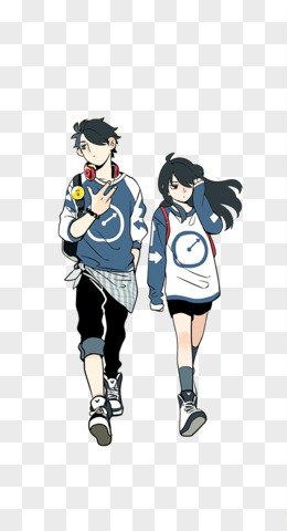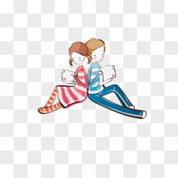 卡通手绘情侣和单身狗一起看电影免抠素材