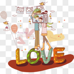 手绘卡通情侣浪漫拥抱插画免抠元素