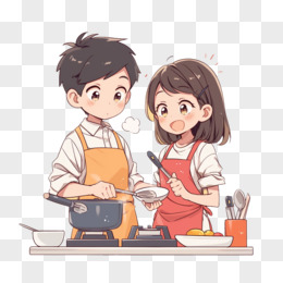 卡通年轻情侣在吃火锅吃饭免抠元素