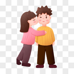 卡通手绘情侣亲亲免抠元素