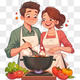 卡通手绘情侣做美食免抠元素