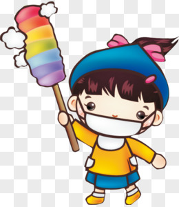 手绘卡通小伙伴扫雪场景插画免抠元素
