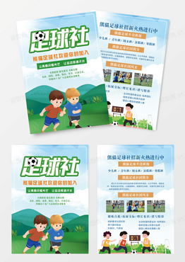 蓝绿色卡通足球社招新社团招新宣传单DM