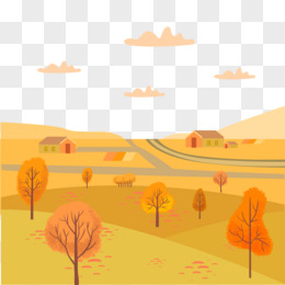 手绘卡通秋天田野素材