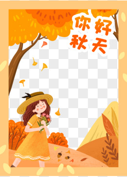 卡通风秋天一个小孩抱着一篮橘子免抠元素
