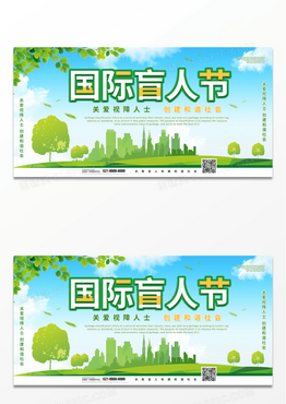 简约绿色卡通国际盲人节关爱视障人士展板国际盲人节展板