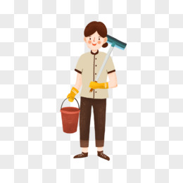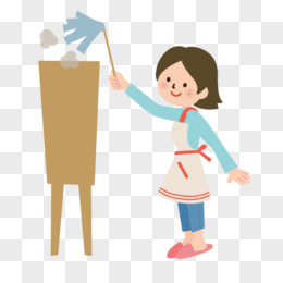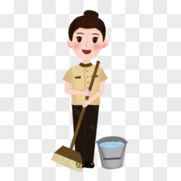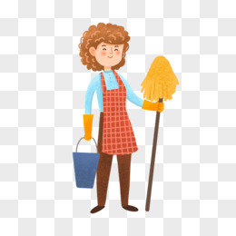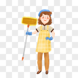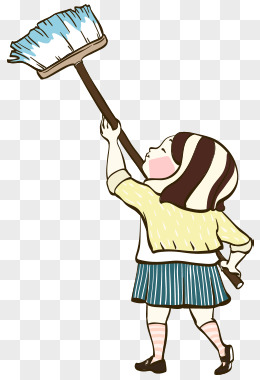 卡通手绘免抠打扫卫生的家庭妇女素材