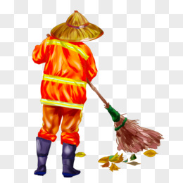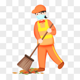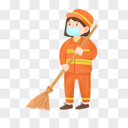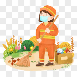 卡通手绘免抠环卫阿姨打扫卫生素材