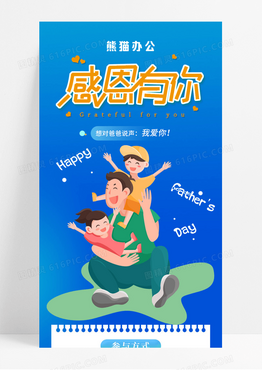 蓝色父亲节活动简约大气风格卡通人物活动手机长图
