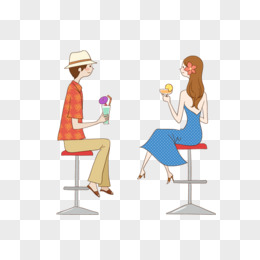 卡通手绘男女面对面聊天免抠元素
