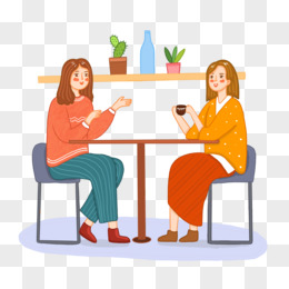 卡通手绘闺蜜下午茶谈心聊天场景素材
