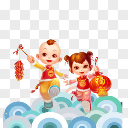 手绘卡通穿传统服饰的蒙古人男女插画免抠元素