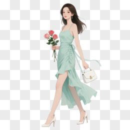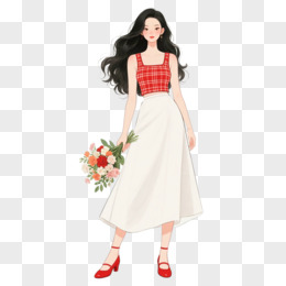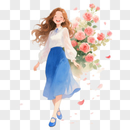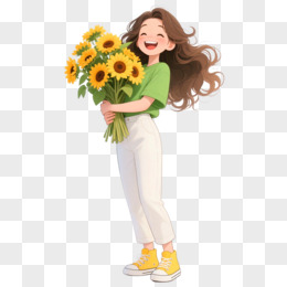 母亲节妈妈拿着一束康乃馨开心的笑免抠元素