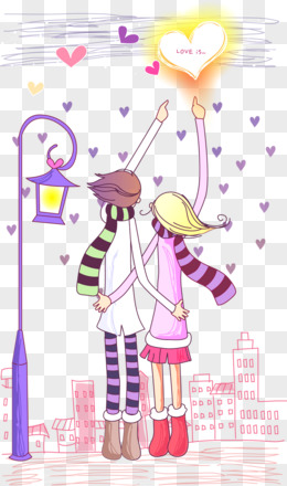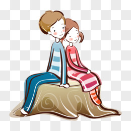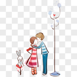 卡通手绘恋人情侣约会甜蜜亲吻素材