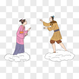 手绘牛郎织女七夕情人节插画元素