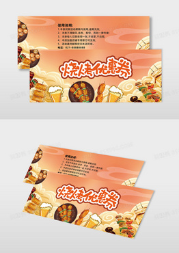 棕色卡通烧烤优惠券