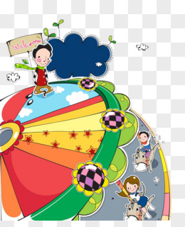 卡通手绘男孩遮住女孩眼睛免抠素材