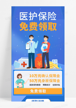 蓝色简约大气卡通人物医疗保险医生海报手机ui长图