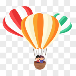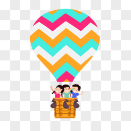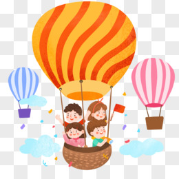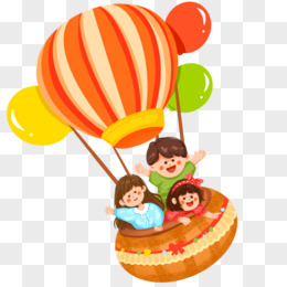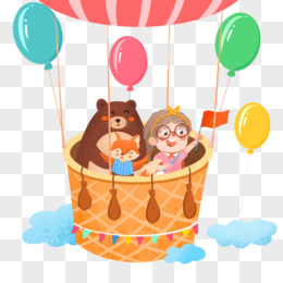 手绘卡通大孩子在热气球吊篮里面开心的场景元素