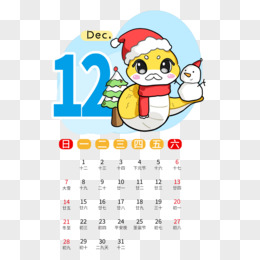 12月卡通蛇年日历合集元素免抠元素十