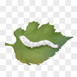 卡通手绘桑叶上的熟蚕成年蚕宝宝免抠素材