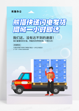 蓝色插画卡通城市物流海报